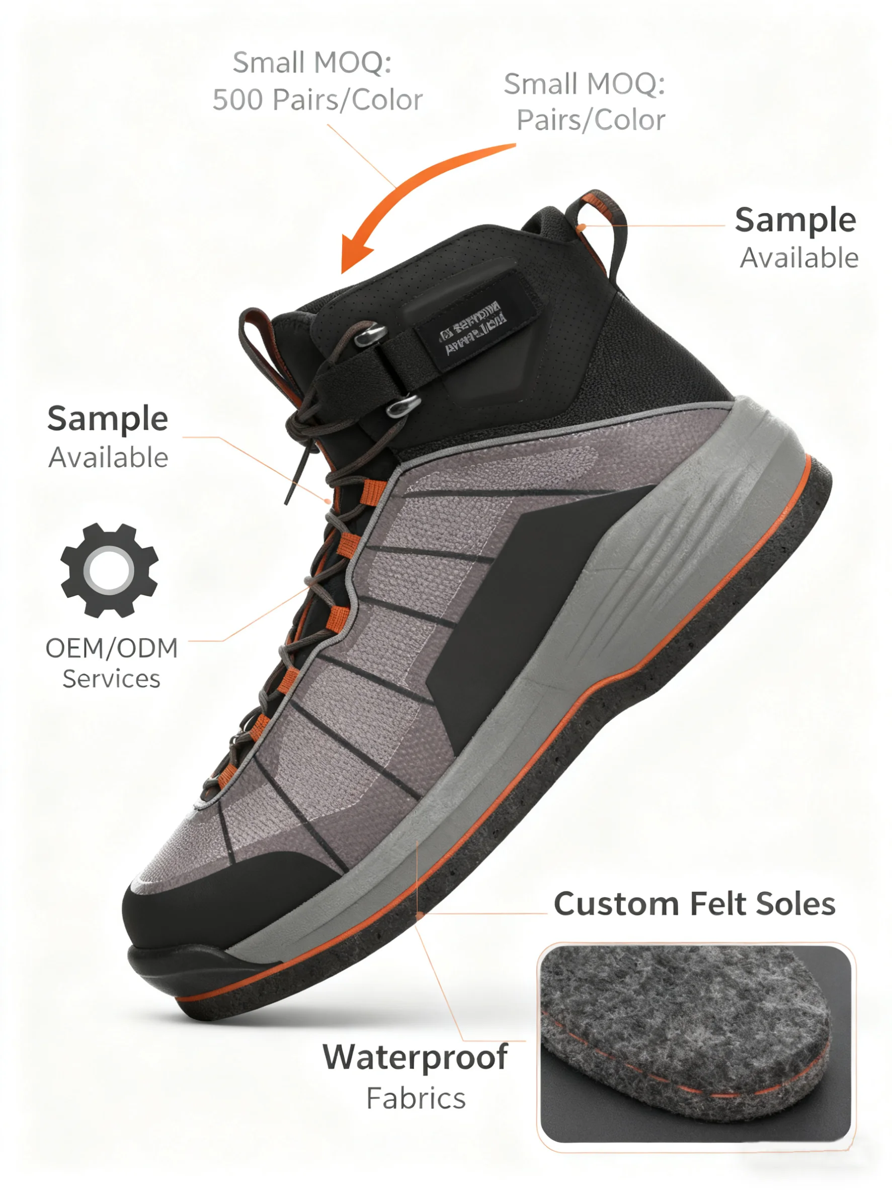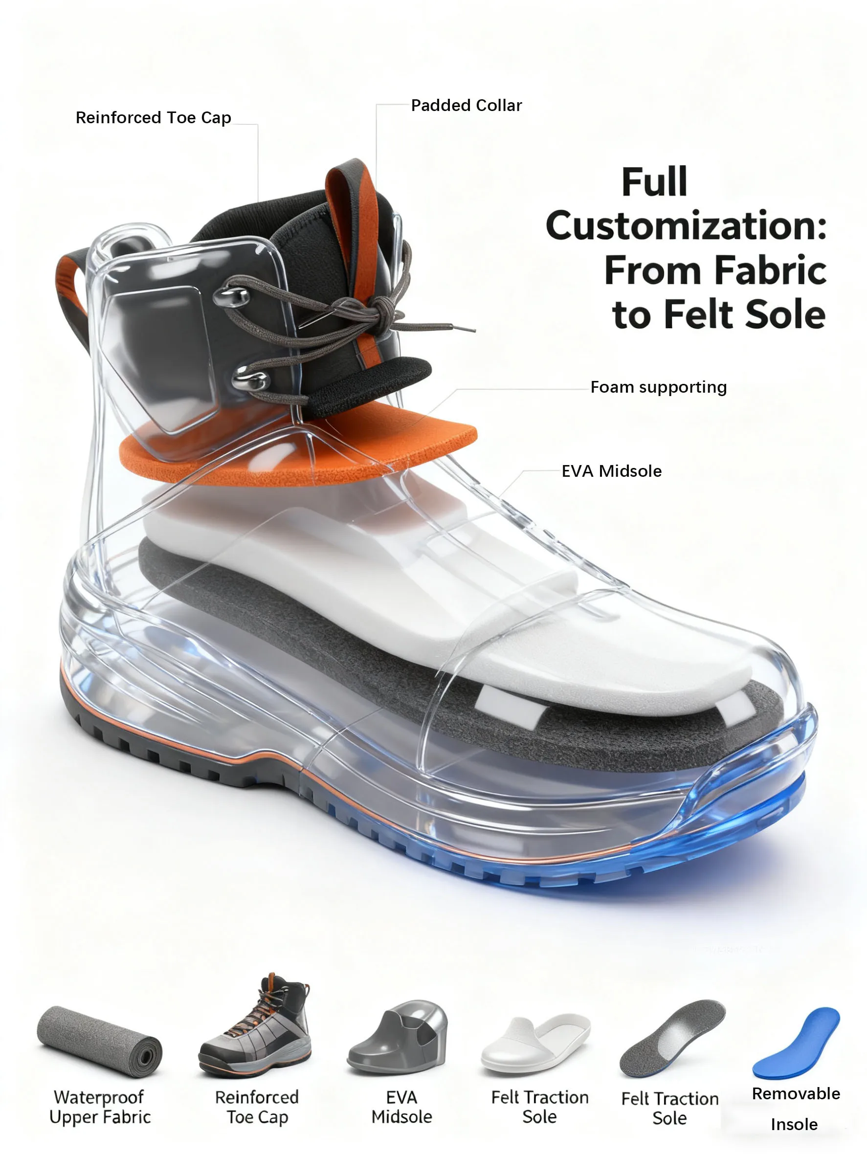 Customize Wading Fishing Felt Spike Shoes Felt Soles Rocks Quick Drying Wading Water Sea Boots